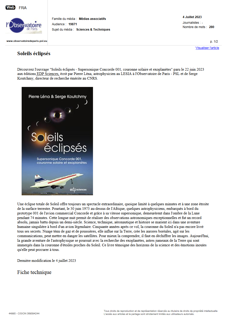 A.3 Pourquoi a-t-on appelé «éclipse du siècle » l’éclipse totale de 1973 ?..... 232
