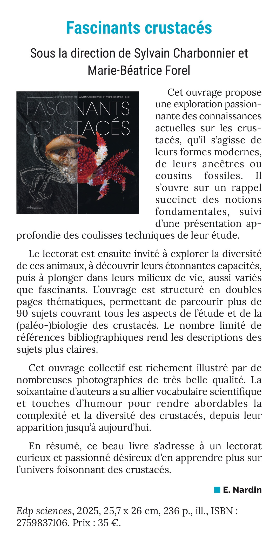 Quand les crustacés font la une Marie-Béatrice Forel 218